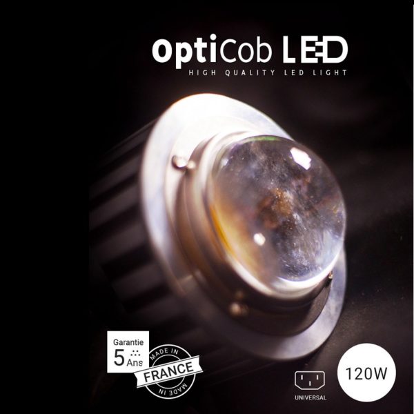 L’optiCob Led embarque une puce Vero29 Gen7, sur un dissipateur Méchatronics. Le tout est alimenté par un driver Meanwell HLG-160 et le choix d’un spectre en 3500K vous garantit un spectre adapté pour la croissance et la floraison.